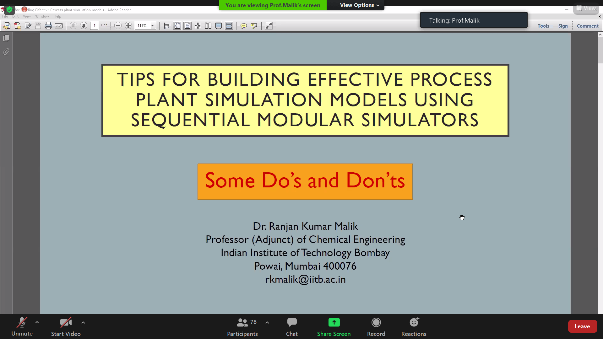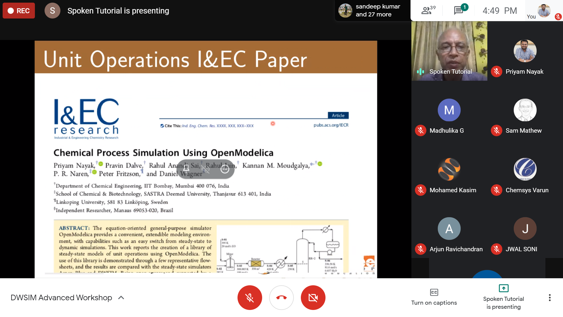 Online DWSIM-Advanced workshop conducted for students, faculties and industry participants on August 25, 2020.